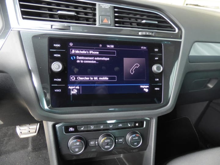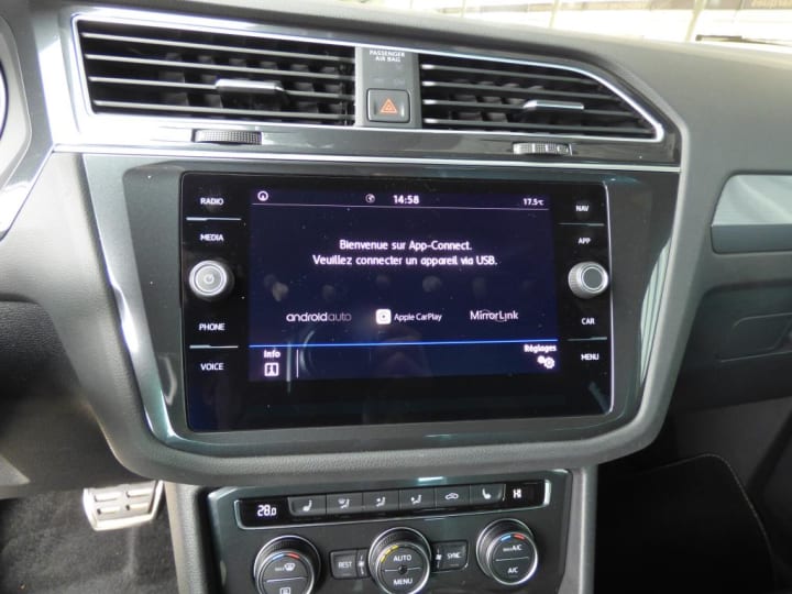 "App-Connect" avec 2ème port USB compatible Apple|2 lampes de lecture à LED à AV et 2 à AR|2 ports USB compatible Apple|3 ceintures de sécurité trois points à l?AR y compris rétracteurs de ceintures|8 HP|ACC : Régulateur de vitesse adaptatif|Accoudoir central AV réglable en hauteur et longueur|Accoudoir central avec porte-gobelets intégré dans les sièges AR|Airbag conducteur et passager avec désactivation airbag passager|Airbag genoux côté conducteur|Airbags latéraux AV, avec airbags de tête|Antidémarrage électronique|Appuis-tête à sécurité optimisée réglables en hauteur sur les sièges conducteur et passager AV ainsi que sur les places AR|Banquette AR et dossier divisés, rabattables 1/3 2/3|Barre stabilisatrice AV/AR|Circuit d'éclairage automatique des phares avec éclairage jour, fonction "Leaving home" et fonction "Coming home" manuelle|Climatisation automatique "Climatronic"|Correcteur électronique de trajectoire ESP, amplificateur de freinage d?urgence, système d?antiblocage des roues ABS, blocage électronique de différentiel EDS, antipatinage électronique ASR et régulateur électronique de couple MSR|Couvre-coffre|DAB radio numérique|Direction assistée électromécanique asservie à la vitesse|Dossier de siège passager AV entièrement rabattable|Dynamic Lane Assist|Détecteur de pluie|Détection de fatigue|Eclairage de plaque d'immatriculation à LED|Eclairage du coffre et prise 12V dans le coffre|Eclairage du plancher aux places AV|Eclairage à l'intérieur des poignées de porte AV|Feux AR à LED Premium 3D|Frein de stationnement électromécanique à desserrage automatique et assistance dynamique au démarrage avec frein de secours électropneumatique et système de maintien du véhicule en côte (AutoHold)|Front Asisst avec détecteur des piétons|Interface Bluetooth|Miroir intérieur anti éblouissement|Oeillets d'arrimage ISOFIX (dispositif pour fixation de 2 sièges-enfants sur la banquette AR)|Ordinateur de bord avec affichage multifonction "Premium" en couleur|Outillage de bord|Pare-chocs dans la couleur de la carrosserie avec partie basse noire|Park Pilot: Aide au stationnement AV/AR avec signaux acoustiques|Phares à LED adaptatifs avec feux de jour à LED et Dynamic Light Assist|Pommeau du levier de vitesse cuir|Pre Safe Assist - Système proactif de protection des passagers|Prise 12 V dans la console centrale, la console AR et dans le coffre à bagages|Projecteurs antibrouillard AV avec éclairage statique d'intersection|Rails de toit anodisés|Rétroviseur intérieur jour/nuit automatique|Rétroviseurs extérieurs chauffants, réglables et rabattables électriquement|Rétroviseurs extérieurs électriques et dégivrants, asphérique côté conducteur, convexe côté passager|Sièges AV Sport avec réglage lombaire|Système Navigation & Infotainment "Discover Media"|Tapis de sol textile AV et AR|Tiroirs sous les sièges AV et poches de rangement derrière les sièges AV|Verrouillage central avec radiocommande et 2 clés pliantes de radiocommande|Vitres AR surteintées à 65%|Volant cuir multifonction avec palettes au volant|Volant multifonctions 3 branches en cuir, réglable en hauteur et en profondeur|Affichage tête haute|Crochet d'attelage escamotable avec déverrouillage électrique|Peinture nacrée Blanc Oryx|JA 19"|Sièges chauffant|Sièges similicuir|Hayon ouverture électrique|Pack R-line