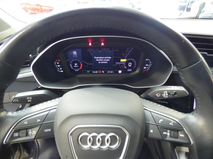 2 prises USB à l'AR et prise 12 V dans la console centrale AR|Accoudoir central AV avec vide-poches relevable et inclinaison réglable et coulissant en longueur|Affichage de contrôle de pression des pneus|Appel d'urgence Audi connect|Assise et dossier de banquette AR, divisée, rabattable 40/20/40|Audi Connect Navigation et Divertissement|Audi Drive Select|Audi Parking System Plus|Audi Pre Sense Basic|Audi Smartphone Interface|Audi virtual cockpit|Avertisseur de franchissement de ligne et avertisseur de changement de voie|Climatisation automatique confort 2 zones|Clé à fréquence radio|Combiné d'instruments entièrement numérique 10,25"|Direction assistée électromécanique, asservie à la vitesse|Détecteur de pluie et de luminosité|Fixation pour sièges enfants ISOFIX et Top Tether pour les sièges extérieurs AR|Interface Bluetooth|Interface USB pour chargement d'appareils externes|Jantes en aluminium coulé 17" 5 branches doubles 7Jx17", pneus 215/65 R17|Kit réparation|MMI Radio Plus avec MMI Touch|Phares AV à LED (feux de croisement, feux de route, feux diurnes et feux de position LED, clignotants à ampoule)|Réception radio numérique (DAB)|Régulateur de vitesse|Rétroviseur intérieur jour/nuit automatique sans encadrement|Rétroviseurs extérieurs couleur carrosserie|Rétroviseurs extérieurs réglables, dégivrants et rabattables électriquement avec fonction rabat automatique|Sièges AV réglables manuellement: Hauteur et positionnement en longueur, Inclinaison de dossier, Hauteur des appuie-tête et des ceintures|Tapis de sol AV/AR|Caméra de recul|Lave-phares haute pression|MMI Navigation plus avec MMI touch|Peinture métallisée Gris Nano|Sièges AV chauffants|Sièges AV sport|Radar de stationnement avant et arrière.|Clé accès confort