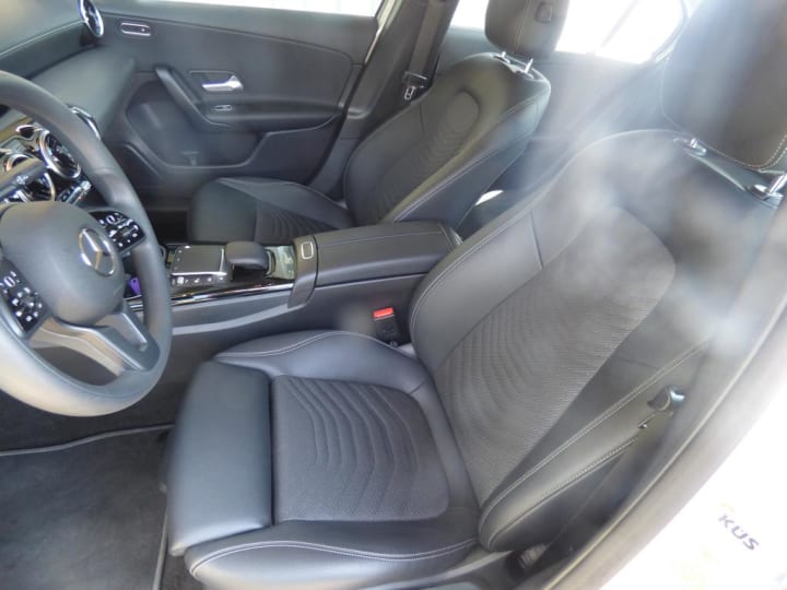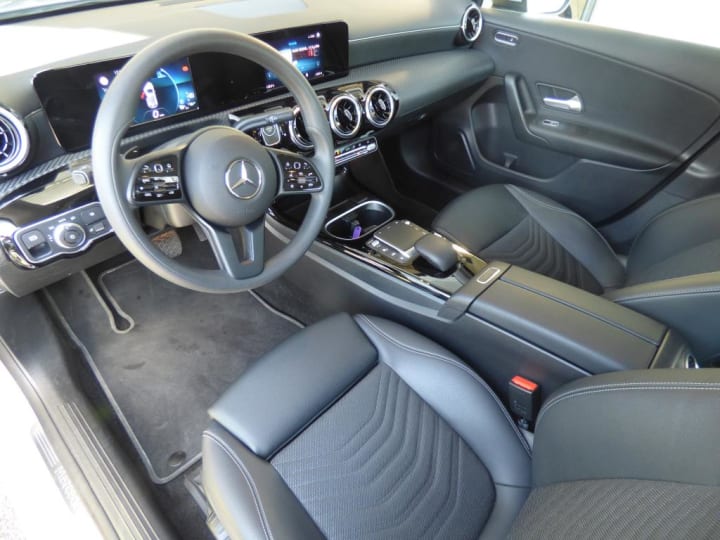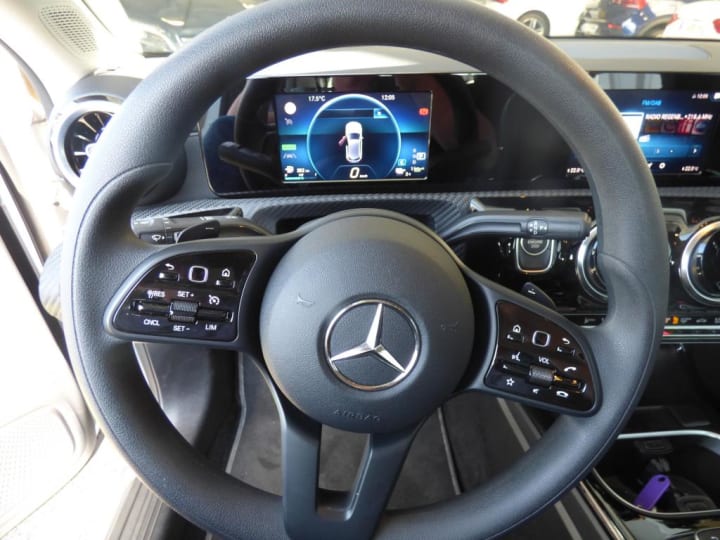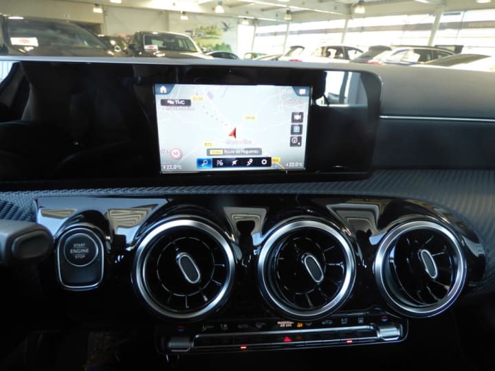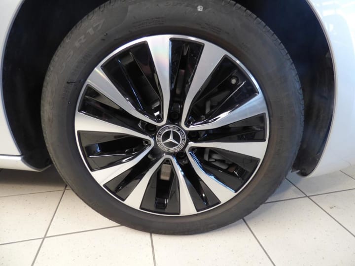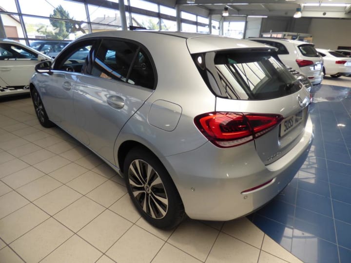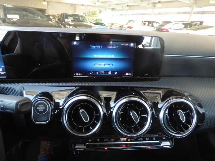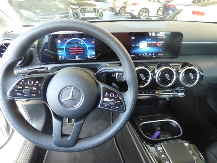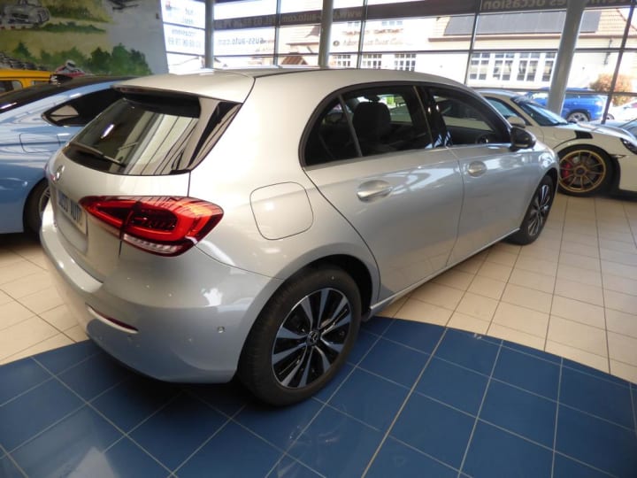 ABS (anti-blocage de roues), ASR (antipatinage), BAS (freinage d'urgence assisté)|ADAPTATIVE BRAKE avec fonction HOLD et système d'aide au démarrage en côte, préremplissage et séchage des freins par freinage en cas de pluie|ATTENTION ASSIST|Accoudoir central AV|Affichage de l'état des ceintures AR (bouclées/non bouclées) sur le combiné d'instruments|Aide au stationnement active avec capteurs à ultrasons AV/AR|Airbag genou|Airbags frontaux pour le conducteur et le passager AV|Airbags latéraux pour le conducteur et le passager AV (airbags combinés thorax et bassin)|Airbags rideaux|Antenne GPS|Assistant de limitation de vitesse par lecture des panneaux grâce à une caméra|Avertisseur sonore pour piétons|Baguettes de ligne de ceinture et entourages de vitres chromés|Banquette AR rabattable|Boîte de vitesse automatique 8G-DCT|Capot moteur actif|Capteur de pluie et de luminosité|Chargeur embarqué 3,7 kW AC|Ciel de pavillon en tissu Noir|Climatisation automatique THERMATIC|Connexion Bluetooth pour téléphone portable|Console centrale en finition noir brilliant|Contrôle de pression des pneumatiques|Câble de charge pour boîtier mural et bornes de recharge publiques, 5 m, droit, 11 kW|Câble de charge pour prise secteur, 5 m, droit|DYNAMIC SELECT|DYNAMIC SELECT avec 4 modes de conduite (ECO - sauf boîte mécanique, Confort, Sport et Individual)|Dossiers AR rabattables 40/20/40|Double porte-gobelets|Désactivation automatique de l'airbag passager|Ecran média 10,25"|Essuie-glaces avec détecteur de pluie|Feux de stop adaptatifs|Filet de rangement au dos des sièges AV|Fixations iSize pour siège-enfant avec sangle Top Tether aux places extérieures AR|Fonction de démarrage sans clé KEYLESS-GO|Frein de stationnement électrique|Freinage d'urgence assisté actif (BAS)|Garniture en Tissu/Similicuir ARTICO Noir|Inserts décoratifs façon Carbone|Interface USB-C dans le vide-poches et 2 interfaces USB-C sur la console centrale AR|Jantes alliage 17" à 5 doubles branches finition Noir mat et Naturel brillant, pneus 205/55 R17, 6.5Jx17|Kit anticrevaison TIREFIT|Module de communication LTE pour l'utilisation des services Mercedes connect me|Navigation par disque dur|Pare-soleil avec miroir de courtoisie éclairé|Pavé tactile TOUCHPAD|Prise 12 V dans le vide-poches de la console centrale|Prise de recharge|Progressive Line|Projecteurs LED hautes performances|Radio digitale|Réception radio numérique DAB|Régulateur de vitesse TEMPOMAT avec limiteur de vitesse|Sièges AV Confort|Tapis de sol en velours|Vide-poche sur la console centrale avec couvercle à enrouleur|Volant Sport multifonction en cuir|KEYLESS-GO|MBUX Réalité augmentée pour la navigation|Peinture métallisée Argent Iridium|Sièges AV chauffants|Disponible 4 roues hiver sur JA 17" en supplément pour 900 €|Caméra de recul