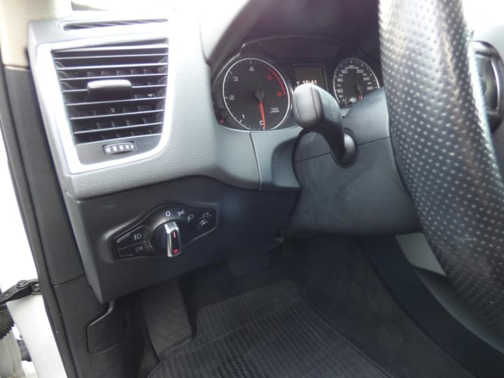 Accoudoir central AV avec vide-poches et 2 prises 12V|Accoudoir central rabattable dans le dossier de la banquette AR|Airbag grand volume adaptatif conducteur et passager AV avec détection de la position du siège|Airbags latéraux thorax et bassin à l'AV|Anti-patinage (ASR)|Antidémarrage électronique intégré à la commande du moteur, activation automatique par la clé du véhicule|Appuie-tête réglables à l'AV et l'AR|Autoradio Concert lecteur CD MP3, carte SD MP3 et 8HP, MMI, écran couleur 6,5", fonction Memo-TP GALA, prise AUX-IN.|Banquette AR rabattable 60/40, déverrouillage à distance des dossiers via un levier dans la garniture latérale du coffre|Becquet de pavillon|Ceintures de sécurité: Ceintures 3 points à enrouleur pour tous les sièges, avec contrôle de port à l'AV, assorties à la couleur de l'habitacle|Climatisation automatique Confort Plus|Colonne de direction de sécurité|Contact d'allumage électronique: clé de contact mémorisant différentes données d'entretien|Contrôle de pression des pneumatiques|Couvre-bagages coulissant automatiquement par glissières|Direction électromécanique pour augmenter l'efficience, la force de direction n'est pas fournie par le moteur à combustion mais générée électriquement en cas de besoin|Déverrouillage du coffre avec touche douce (déverrouillage avec assistance électrique)|Eclairage intérieur à temporisation avec contacteurs sur toutes les portières, lampe à l'AV avec 2 spots de lectures supplémentaires, lampes à l'AR avec fonction spots de lecture, cendrier éclairé à l'AV, boîte à gants, coffre et hayon éclairés, témoin lu|Ecran 6.5" couleur intégré au tableau de bord, pour affichage des fonctions de la radio, de la climatisation et des fonctions du menu du véhicule, ainsi que de l'heure|Frein de stationnement électromécanique avec fonction frein de secours sur les 4 roues durant la marche|Hil Descent Control HDC: contrôle de descente qui permet de maintenir une vitesse stabilisée entre 9 et 30 km/h, possibilité d'activer le système jusqu'à 60 kml/h|Interface Bluetooth|Lève-vitres électriques AV et AR avec protection antipincement et fonction ouverture/fermeture confort par impulsion|Ordinateur de bord monochrome, système de contrôle Autocheck et programme efficiency|Pare-soleil rabattables et pivotants côté conducteur et passager AV|Phares antibrouillard intégrés dans bouclier AV|Poignées de maintien :4 poignées rabattables avec mécanisme d'amortissement, encastrées dans le ciel de pavillon|Poignées de portières extérieures laquées dans la couleur de carrosserie|Porte-boissons double dans la console centrale|Programme électronique de stabilisation ESP avec détection de barres de toit, allie ABS, EBV, ASR et EDS à ses propres capteurs|Projecteurs antibrouillard|Préparation pour sièges enfants Isofix aux places extérieures AR|Prétensionneurs sur les ceintures de sécurité AV|Quattro transmission intégrale permanente avec répartition asymétrique et dynamique de couple, différentiel central autobloquant, blocage électronique de différentiel EDS par intervention sur les freins des roues motrices|Rampes de pavillon en aluminium poli|Sellerie tissu Havane|Servotronic: direction assistée asservie à la vitesse|Sièges AV avec réglage manuel de la hauteur, de la longueur et des appuie-têtes ainsi que le réglage de l'inclinaison du dossier|Système de freinage à double circuit en diagonale, système antiblocage de roue ABS avec répartiteur électronique de freinage EBV, programme électronique de stabilisation ESP avec détection de barres de toit et assistance au freinage d'urgence, amplificate|Verrouillage électrique de la colonne de direction|Vide-poches dans les contre-portes AV/AR pouvant contenir une bouteille de 1,5 litres|Vitres athermiques teintées vertes et pare-brise en verre feuilleté|Volant airbag Sport en cuir style 3 branches multifonctions (avec palettes de changement de vitesses sur S tronic et tiptronic)|GPS Advanced: système de navigation MMI de troisième génération avec affichage de cartes en 3D, joys tick intégré dans le bouton poussoir, permet l'accès à différentes sources audio telles que disque dur, lecteur DVD (audio/vidéo), 2 lecteurs de cartes SD|Jantes aluminium coulé style 5 branches en étoile 8Jx19" avec pneus 235/55 R19|Lave-phares haute pression|Parking System Plus avec camera de recul : système accoustique et visuel d'aide au stationnement AV et AR avec camera de recul permettant de visualiser l'AR du véhicule sur l'écran couleur du MMI|Projecteurs Xénon Plus avec lave-phares et feux de jour LED|Vitres AR surteintées : revêtement foncé des vitres de portières AR et latérales AR ainsi que la lunette AR