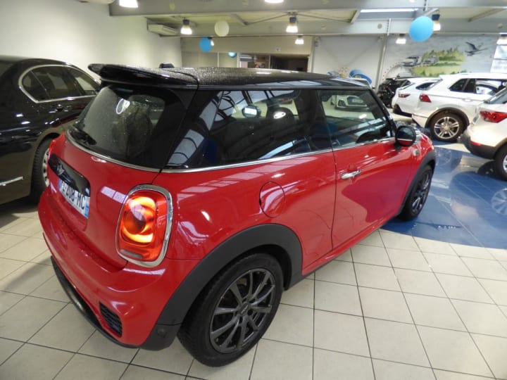2 HP et 2 woofers|2ème clé radiocommandée|3ème feu de stop|ABS et assistance au freinage d'urgence|Accoudoir central AV inclinable en 4 positions|Airbags de tête|Airbags frontaux pour conducteur et passager AV|Airbags latéraux AV|Allumage automatique des feux de détresse|Anti-démarrage électronique|Appuis-têtes AV et AR réglables en hauteur|Autoradio MINI Visual Boost|Banquette AR 2 places rabattable 60/40|Becquet AR de toit John Cooper Works|Boîte de vitesses manuelle à 6 rapports|Buses de lave-glace et rétroviseurs extérieurs dégivrants|Ciel de pavillon anthracite|Clignotants blancs|Climatisation automatique bi-zone|Contrôle du freinage en courbe CBC|Coques de rétroviseurs extérieurs couleur carrosserie|DSC (Contrôle Dynamique de stabilité)|DTC Dynamic Traction Control avec fonction EDLC|Détecteur de pluie et allumage automatique des projecteurs|Feux de stop dynamiques|Fonction Start&Stop et démarrage sans clé|Fonction profile: import/export des données et réglages véhicule|Freins à disques AV et AR ventilés à l'AV|ISOFIX : Ancrages normalisés pour sièges enfants sur les 2 sièges AR|Indicateur de perte de pression des pneumatiques RPA|Kit Aérodynamique John Cooper Works|Kit de réparation de pneus|Lève-vitres électriques AV avec commande à impulsion et protection anti-pincement|Ordinateur de bord multifonctions|Pare-chocs AV/AR dans la couleur de la carrosserie|Performance Control|Poignées de portes chromées|Poignées intérieures de portes chromées|Porte-boissons AV (x2)|Prise 12V sous la console centrale|Projecteurs AV et feux AR au contour chromé|Prétentionneurs de ceintures AV|Réglage en hauteur du siège passager AV|Réglage électrique de la portée des projecteurs|Rétroviseurs extérieurs à réglage électrique|Seuils de portes exclusifs John Cooper Works|Siège conducteur réglable en hauteur|Sièges AV Sport|Surveillance de l'éclairage extérieur|Surveillance de la pression des pneumatiques|Système d'accès aux places AR Easy-Entry|Tapis de sol en velours|Touches multifonctions sur le volant avec régulateur de vitesse|Trappe à carburant côté droit|Verrouillage automatique des portes dès 16 Km/h|Verrouillage centralisé des portes, du coffre et de la trappe à carburant|Vitre AR chauffante avec essuie-glace|Volant Sport gainé Cuir John Cooper Works|Volant réglable en hauteur et en profondeur|Radars de stationnement AR|Sièges AV chauffants|Toit Noir|Rétro ext drapeau Anglais|JA 16"|Sieges avant sport en tissu|limiteur de vitesse.