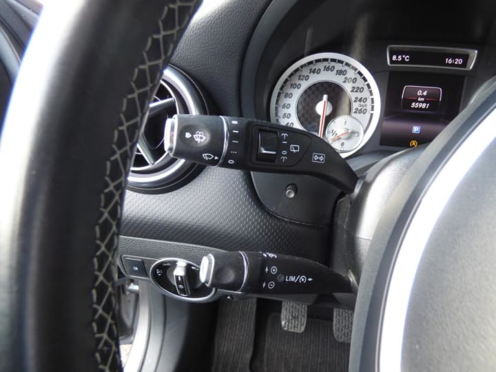 ABS (antiblocage de roues) et ASR (antipatinage)|ADAPTATIVE BRAKE avec fonction HOLD et système d'aide au démarrage en côte|ATTENTION ASSIST : système de détection de somnolence|Accoudoir central AV avec vide-poches|Airbag genoux pour le conducteur|Airbags bassin intégrés aux sièges conducteur et passager AV|Airbags frontaux à plusieurs seuils de déclenchement|Airbags latéraux|Airbags rideaux|Avertisseur de perte de pression des pneus (témoin uniquement)|BAS (Freinage d'urgence assisté)|Banquette AR rabattable 2/3 - 1/3|Boîte de vitesses mécanique à 6 rapports avec affichage du rapport préconisé|Boîte à gants éclairée|COLLISION PREVENTION ASSIST|Ceintures de sécurité 3 points à toutes les places|Clignotant avec fonction confort|Connexion Bluetooth pour téléphone portable et clavier numérique intégré|Contrôle de pression des pneumatiques|Détecteur d'occupation du siège passager AV|ESP (régulation de comportement dynamique)|Feux AR antibrouillard|Feux de stop adaptatifs|Fonction d'arrêt / redémarrage " Stop / Start ECO " avec commutateur de désactivation manuelle|Frein de stationnement électrique|Garnitures intérieures en tissu/similicuir ARTICO Larochette|ISOFIX : fixations pour sièges enfants AR|Indicateur de température extérieure|Indicateur dynamique de maintenance ASSYST PLUS|Interfaces USB et Aux-In dans l'accoudoir central AV|Jantes alliage 17" design 5 doubles branches bicolores avec pneus 225/45 R17|Kit anti-crevaison "Tirefit"|Lève-vitres électriques (x4) à commande séquentielle et dispositif anti-pincement|Ordinateur de bord|Pare-chocs peints couleur carrosserie|Projecteurs Bi-Xénon avec lave-phares, feux de jour, feux de position, clignotants, feux AR et feux de stationnement à technologie LED|Radio Audio 20 CD avec écran couleur 5.8", double tuner, lecteur CD compatible MP3/WMA/AAC|Rétroviseurs extérieurs et poignées de porte dans le ton carrosserie|Rétroviseurs extérieurs électriques chauffants et asphériques, avec rappels de clignotants intégrés|Siège conducteur réglable manuellement en hauteur|Sièges AV avec design spécifique et réglages manuel de l'inclinaison des assises et de la hauteur du siège passager|Suspension et train de roulement confort|Sécurité enfants avec verrouillage manuel des portes AR et électrique des vitres AR|Verrouillage centralisé à télécommande avec fonction verrouillage automatique désactivable|Volant multifonctions à 12 touches|APA (Aide au parking active): Système d'aide au stationnement avec radars AV et AR et fonction manoeuvres automatiques|Navigation Becker MAP PILOT: Navigation 3D (cartographie Europe) par disque dur, information trafic TMC et affichage des limitations de vitesse|Peinture spéciale Gris Montagne MAGNO designo|Sièges AV chauffants|Sièges sport|Park Assist|Clim manuel