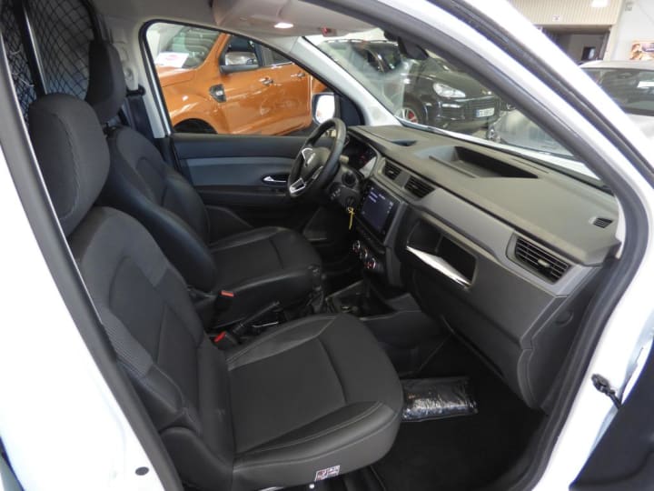 ABS + EBV (répartiteur électronique de freinage)|Boucliers AV/AR, rétroviseurs et baguettes latérales noir grainé|Boîte à gants fermée|Ceintures de sécurité avant 3 points avec double prétensionneur et limiteur d'effort|Climatisation AV à réglage manuel|Condamnation centralisée des portes|Contrôle dynamique de trajectoire (ESP) avec aide au démarrage en côte|Enjoliveur CARTEN|Feux et essuie-vitres automatiques|Lève-vitre conducteur impulsionnel|Peinture opaque|Porte latérale droite coulissante tôlée|Radio DAB Connect R&GO (Bluetooth, USB)|Roue de secours|Roues tôlées 15"|Sans protection de plancher|Sellerie tissu INTI Black structure|Siège conducteur réglable en hauteur|Siège passager standard|Siège sans Isofix|EASY LINK Ecran 8" : Système multimédia compatible Android Auto TM - Apple CarPlay TM - Bluetooth|Radar AR|Tapis de chargement caoutchouc