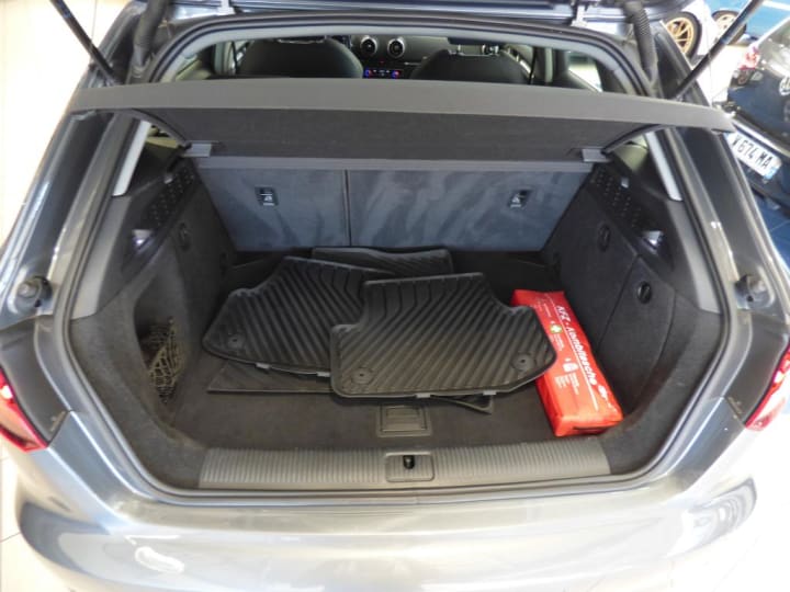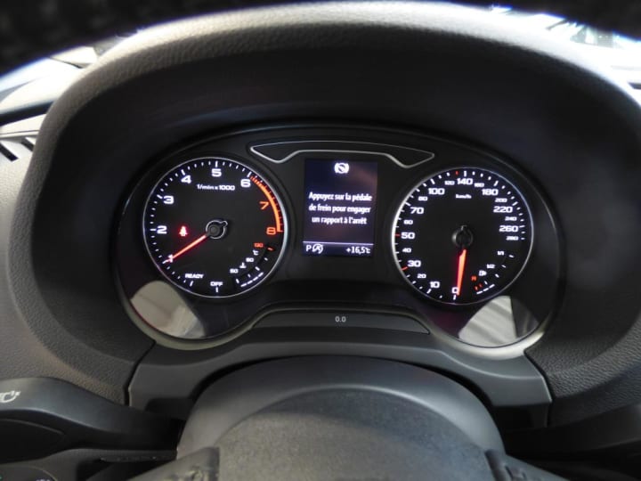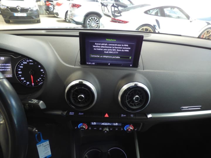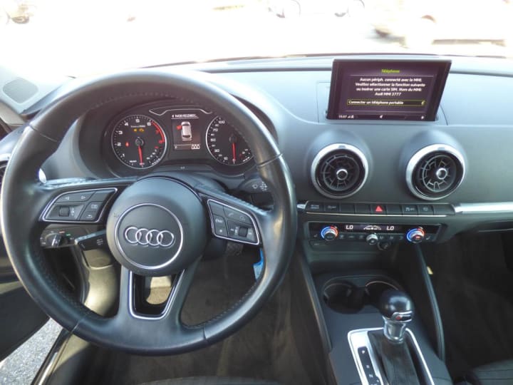 ABS avec répartiteur électronique de freinage EBV, programme électronique de stabilisation ESC avec détection de barres de toit et assistance au freinage d?urgence|ASR (antipatinage) pour une motricité et une rigidité transversale optimale. Réduit le patinage des roues motrices.|Accoudoir central AV|Airbags frontaux côté conducteur et passager avec airbag de genoux et désactivation de l'airbag passager|Airbags latéraux (airbag thorax et bassin à l'AV)|Appuis-tête AV et AR intégraux|Audi Drive Select|Audi Parking System : Radars AR d'aide au stationnement AR avec signal acoustique|Buses de lave-glace degivrantes|Casquette de toit|Ciel de pavillon en tissu Gris roche|Climatisation automatique bi-zone|Compresseur et produit de colmatage en cas de crevaison|Contrôle de pression des pneumatiques|Contrôle électronique de stabilisation (ESC): comprend les fonctions ABS, EBV, ASR et EDS|Direction assistée servotronic|Détecteur de pluie et de luminosité|Ecrous de roues antivol|Fixations ISOFIX pour sièges enfant pour le siège du passager AV + aux places extérieures AR avec sytème d'ancrage ""Top Tether""|Frein de stationnement électromécanique|Freins à disques sur les essieux AV et AR|Interface Bluetooth|Lecteur CD/MP3 avec un slot pour carte SD|Projecteurs AV Xénon Plus avec feux de jour à LED|Régulateur de vitesse|Rétroviseur intérieur jour/nuit automatique|Rétroviseurs extérieurs avec clignotants à LED intégrés|Rétroviseurs extérieurs couleur carrosserie|Système d'airbags de tête|Tapis de sol AV/AR|Vitres latérales et AR athermique|Volant en cuir multifonction à 3 branches|Volant réglable manuellement en hauteur et en profondeur|Lave-phares|MMI Navigation|Sièges AV chauffants|ATTELAGE AMOVIBLE|JA 17" 5 BRANCHES|Sièges sport|4 roues hiver de disponible pour 700 € en supplément sur JA 16"|chargeur à induction dans l'accoudoire pour Smart Phone