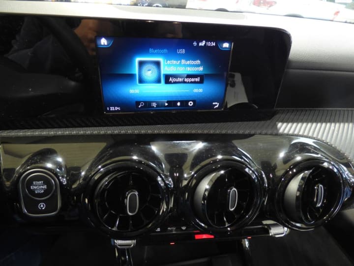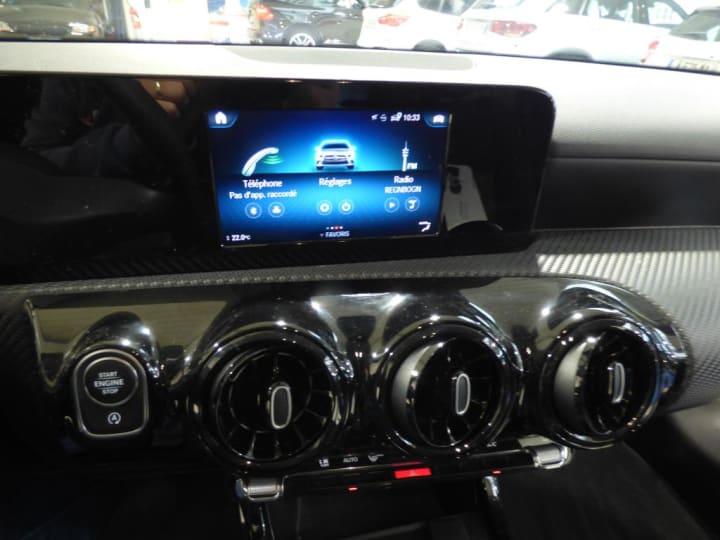 ABS|Aide au démarrage en côte|Airbag genou|Allumage automatique des feux|Assistant de franchissement de ligne actif|Assistant limitation de vitesse|Avertisseur d'oubli des ceintures AR|Banquette AR rabattable|Boîte de vitesse manuelle à 6 rapports|Ciel de pavillon en tissu Noir|Climatisation automatique THERMATIC|Combiné d'instrumentation digitale avec écran tactile|Contrôle de pression des pneumatiques|DYNAMIC SELECT|Direction paramétrique|Double porte-gobelets|Désactivation automatique de l'airbag passager|Détecteur de pluie|Filet de rangement au dos des sièges AV|Filtre à particules pour moteur essence|Frein de stationnement électrique|Jantes alliage 17" à 5 doubles branches finition Gris Himalaya mat, pneus 205/55 R17, 6.5Jx17|Kit anticrevaison TIREFIT|MBUX système multimedia|Ordinateur de bord|Pare-soleil avec miroir de courtoisie éclairé|Pavé tactile TOUCHPAD|Range-lunettes intégré|Régulateur et limiteur de vitesse|Rétroviseurs extérieurs électriques avec rappel de clignotants|Sièges AV Confort|Style Line|Tapis de sol en velours|Volant Sport multifonction en cuir|Peinture non métallisée Rouge Jupiter|Sièges AV chauffants|Bluetooth