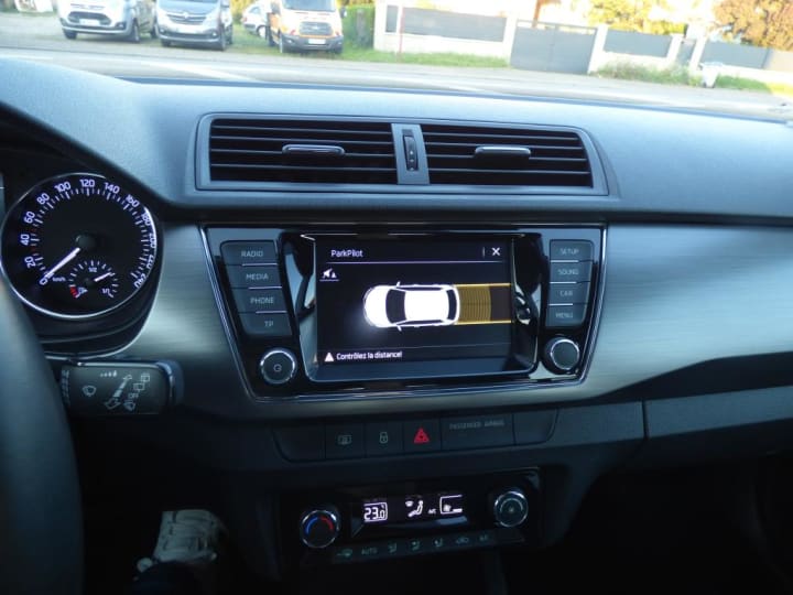 3ème appuis-tête central AR|4 poignées de maintien intégrées au pavillon (2 avec crochet à cintre)|Accoudoir central AV|Aide au démarrage en côte|Airbags frontaux conducteur et passager AV (dont passager déconnectable)|Airbags latéraux AV|Airbags rideaux AV/AR|Allumage automatique des feux|Appuie-têtes AV réglables en hauteur|Assistance 24 /24 H pendant 7 ans|Aumônières au dos des sièges AV|Boîte de rangement sous les sièges conducteur et passager|Boîte à gants inférieure côté passager, fermée éclairée|Cache moteur|Cache-bagages dans le coffre|Calandre au contour chromé|Ceintures de sécurité AR 3 points|Ceintures de sécurité AV à 3 points réglables en hauteur|Climatisation à régulation automatique Climatronic|Commande vocale|Connexions USB (avec Apple Connectivity) + Aux-in + lecteur carte SD|Console centrale noire|Direction assistée électromécanique|Dossier de banquette AR rabattable 2/3-1/3|Détecteur de pluie|ESC (correcteur électronique de trajectoire) incluant ABS, MSR, ASR, EDS, HBA, XDS+, MKB|Eléments couleur chrome/argent : poignées intérieurs de portes, levier de vitesse, buses de ventilation, bouton de frein à main, contour des compteurs|Feux AR antibrouillard|Feux de jour LED + Phares AV avec projecteurs AV sur fond de couleur noire|Filets de rangement sur côté des sièges AV|Filtre à pollen|Freins à disques AR|Freins à disques AV|Front Assist + ordinateur de bord maxi dot|Jantes alliage 15'' Mato (185/60 R15 84H)|Kessy Go: démarrage sans clé|Lunette AR dégivrante|Miroirs de courtoisie côté conducteur et passager dans pare-soleil|Ordinateur de bord grand écran à affichage Maxi-Dot|Pare-chocs AV/AR couleur carrosserie|Pare-soleil AV conducteur et passager|Phares AV antibrouillard|Porte-ticket dans le pare-soleil côté conducteur|Prise 12 V - allume-cigare dans la console centrale|Préparation pour fixation de sièges enfants (suivant norme ISOFIX) aux places AR extérieures|Radar de stationnement AR|Roue de secours|Réglage manuel du site des phares au tableau de bord|Régulateur de vitesse|Répétiteurs de clignotants intégrés aux rétroviseurs extérieurs|Rétroviseur intérieur électrochromatique automatique jour/nuit|Rétroviseurs extérieurs à réglage électrique et dégivrants|Signaux lumineux d'oubli de ceinture de sécurité aux places AV et AR|Siège conducteur réglable en hauteur|Siège passager AV réglable en hauteur|Sièges AV réglables en hauteur|Système Start/Stop|Système téléphone mobile Bluetooth|Tapis au sol AV/AR|Témoin de non bouclage de ceinture de sécurité AV/AR|Témoin de perte de pression des pneumatiques|Verrouillage centralisé à distance (2 clés rétractables)|Vide-poches dans les portes AR support pour bouteille 0,5 litres|Vitres AR électriques|Vitres AV électriques|Volant 3 branches multifonctions pilotant la radio et le téléphone