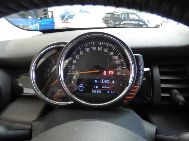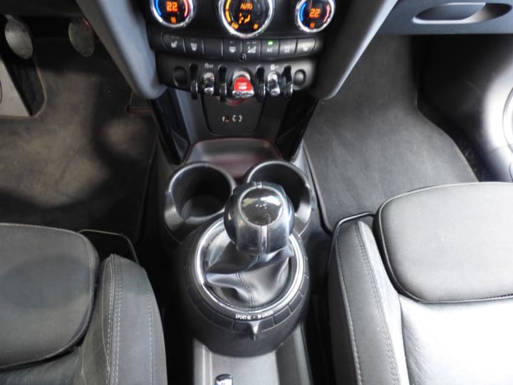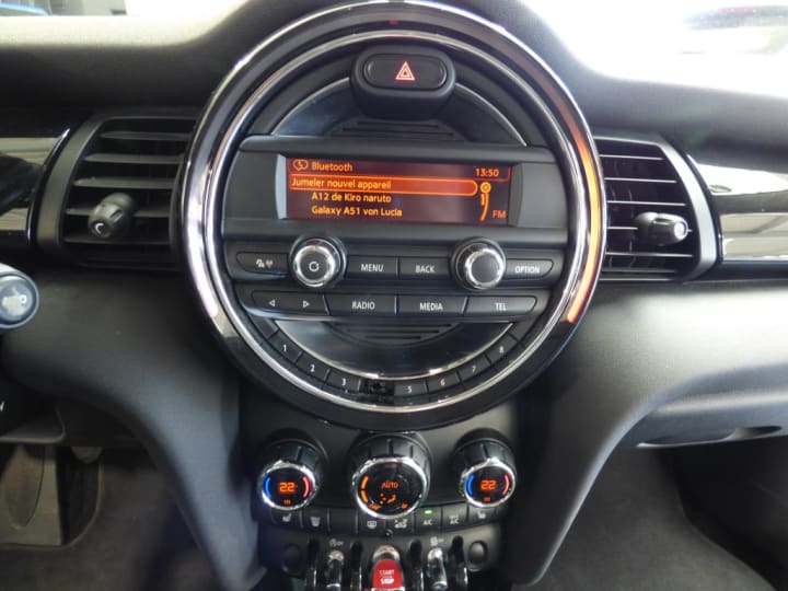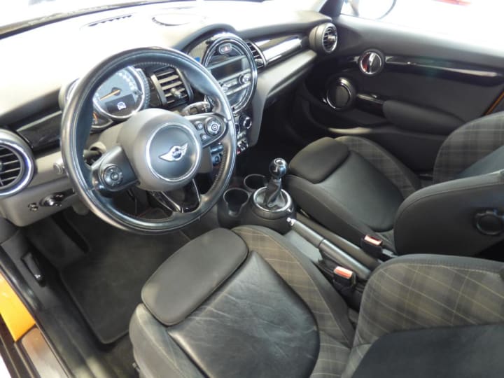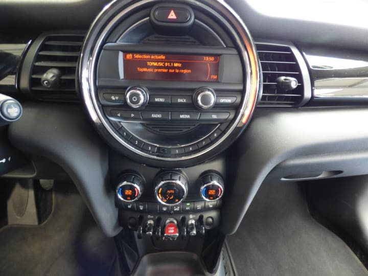 2 HP et 2 woofers|2ème clé radiocommandée|3ème feu de stop|4 Appuis-têtes réglables en hauteur|ABS, y compris assistance au freinage d'urgence et contrôle de freinage en courbe|Airbags de tête|Airbags frontaux pour conducteur et passager AV|Airbags latéraux AV, intégrés au dossier de siège AV|Anti-démarrage électronique|Autoradio MINI AM/FM: avec prises AUX-IN et port USB, écran 4 lignes|Baguettes de seuil de porte avec inscription de la motorisation façon métallique|Banquette AR 3 places rabattable|Barres de calandre White Aluminium|Becquet AR de toit|Boîte manuelle 6 rapports|Boîte à gants réfrigérée|Buses d'aération cerclées de chrome|Buses de lave-glace et rétroviseurs extérieurs dégivrants|Ciel de pavillon Satellite Grey|Climatisation automatique bi-zone|Contour de calandre chromé|Contrôle Dynamique de stabilité DSC avec DTC et EDLC|Coques de rétroviseurs extérieurs couleur carrosserie|Crash Sensor activation automatique en cas d'accident: déverrouillage des portes, éclairage intérieur, feux de détresse, coupure batterie et pompe à carburant|Détecteur de pluie et allumage automatique des projecteurs|Feux de stop dynamiques|Fonction Start&Stop et démarrage sans clé|Fonction profile: import/export des données et réglages véhicule|Fonction sécurité piéton avec capot actif|Freins à disques AV et AR ventilés à l'AV|Indicateur de pressions des 4 pneus et avertisseur automatique en cas de perte de pression d'au moins 25% sur un des pneus|Inserts décoratifs Hazy Grey|Isofix sur les 2 sièges AR|Lève-vitres électriques AV avec commande à impulsion et protection anti-pincement|MINI Mobility System|Ordinateur de bord multifonctions|Ouverture et fermeture à distance des vitres et du TOE si équipé|Pare-chocs AV/AR dans la couleur de la carrosserie|Poignées de portes chromées|Poignées intérieures de portes chromées|Porte-boissons AV (x2)|Prise 12V sous la console centrale|Projecteurs AV et feux AR au contour chromé|Projecteurs antibrouillard AV|Régulateur de vitesse avec fonction freinage|Rétroviseurs extérieurs à réglage électrique|Seuils de portes chromés|Siège conducteur réglable en hauteur|Sièges AV Sport|Sièges AV Sport avec Sellerie Tissu/Cuir "Diamond"|Surveillance de l'éclairage extérieur|Surveillance de la pression des pneumatiques|Système mains-libres Bluetooth niveau 1|Tapis de sol en velours|Touches multifonctions sur le volant avec régulateur de vitesse|Verrouillage automatique des portes dès 16 Km/h|Verrouillage centralisé des portes, du coffre et de la trappe à carburant|Vitre AR chauffante avec essuie-glace|Volant Sport gainé Cuir|Volant en cuir 3 branches réglable en hauteur et en profondeur avec insert Piano Black|Jantes alliage 7Jx17" (205/45 R17) design "Cosmos Spoke" noires|Radars de stationnement AR|Sièges AV chauffants|Toit et rétroviseurs noirs