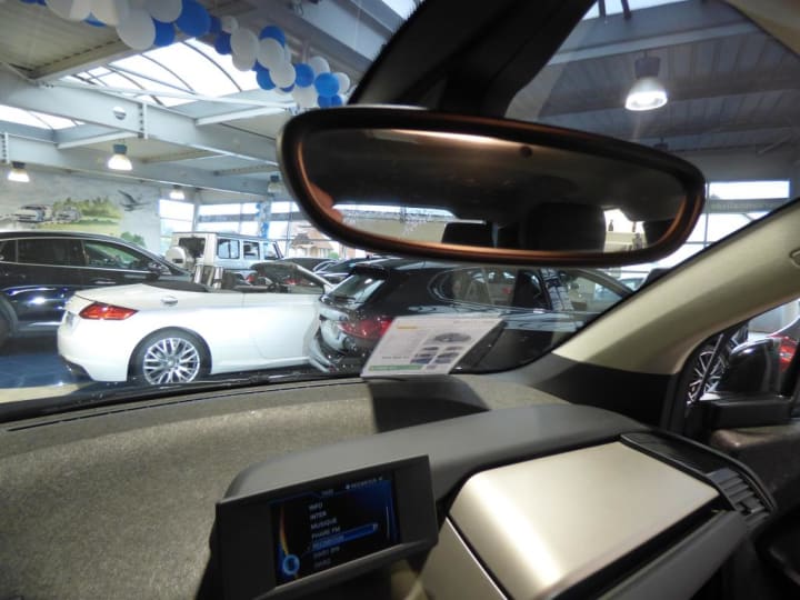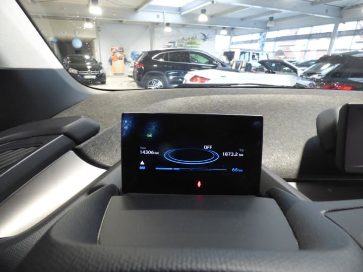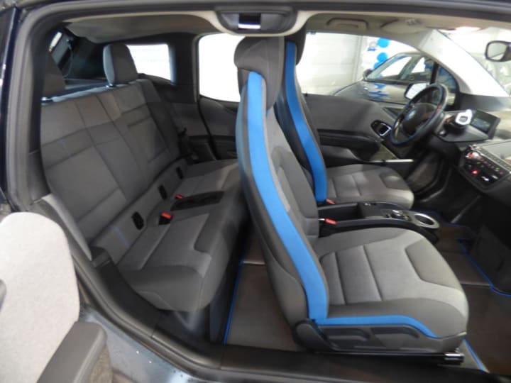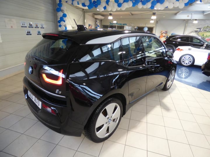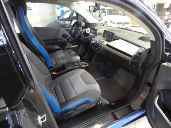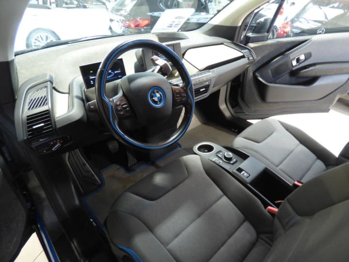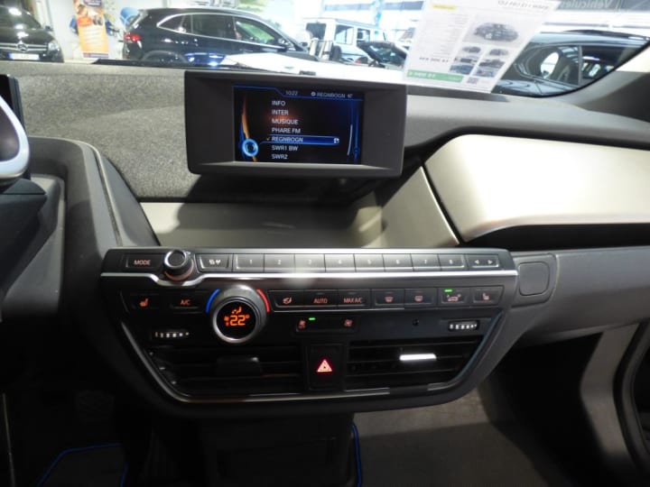 3ème feu stop|ABS, y compris assistant de freinage|Airbags de tête AV/AR|Airbags frontaux conducteur et passager|Airbags latéraux AV|Anneaux d'arrimage dans le coffre sur le seuil de chargement|Antenne "aileron de requin" + antenne courte|Appuis-tête : à l'AV : intégrés au siège, non ajustable (siège intégral), à l'AR : rabattables|Autoradio BMW Professional|Bandeau pare-soleil gris pour pare-brise|Banquette AR 2 places|Batterie lithium-ion hautes performances 32,9 kWh BMW EfficientDynamics|Boîte de vitesses automatique avec sélecteur derrière le volant|Câble de recharge standard sur prise domestique (5 m)|Ceintures de sécurité 3 points à toutes les places|Charge AC + Charge DC|Clés radiocommandées à mémorisation automatique des réglages "Personal Profile"|Clignotants blancs avec répétiteurs latéraux intégrés dans les rétroviseurs extérieurs|Clim Auto|Concept LifeDrive alliant fibres de carbone et aluminium BMW EfficientDynamics|Contrôle de freinage en courbe CBC|Contrôle Dynamique de la Stabilité DSC avec fonctionnalités étendues (y compris assistant de démarrage en côte)|Contrôle Dynamique de Traction DTC|Démarrage sans clé via le bouton Start/Stop|Désactivation de l'airbag passager|Déverrouillage électrique du hayon et du capot AV via la clé radiocommandée|Direction à assistance électrique BMW EfficientDynamics|Direction à assistance variable en fonction de la vitesse Servotronic|Dossiers de banquette AR rabattables symétriquement (50/50)|Eclairage dans le coffre|Eclairage plafonnier AV et AR|Eléments extérieurs (poignées de portes, baguettes de pare-chocs) couleur carrosserie|Feux antibrouillard AR (2)|Fixations ISOFIX aux places AR|Inserts décoratifs "Andesite Silver" mat|Interface Bluetooth et port USB|Jantes profilées 19'' (48cm) style 427 à rayons en étoile 5Jx19"/pneumatiques 155/70 R19|Kit de mobilité BMW|Lève-vitres AV électriques avec commande par impulsion et protection anti-coincement|Mesure individuelle de pression des pneumatiques|Modes ECO PRO et ECO PRO+ (inclut sélecteur de mode de conduite) BMW EfficientDynamics|Ordinateur de bord, Check-Control et indicateur de température extérieure|Ouverture des portes antagoniste, sans montant central|Prise 12V entre les sièges AV|Projecteurs Full LED|Radars de stationnement AR PDC|Sélecteur de mode de conduite avec modes ECO PRO et ECO PRO+|Sièges AV chauffants|Sièges conducteur et passager réglables en hauteur|Système de récupération de l'énergie au freinage BMW EfficientDynamics|Trappe pour recharge électrique : aile AR droite|Verrouillage automatique des portes dès 15km/h environ|Verrouillage centralisé des portes, du coffre et des trappes électrique / essence|Vide-poches ergonomiques dans les portes AV|Vitres AR fixes|Vitres teintées vertes|Volant cuir 2 branches, réglable en hauteur et en profondeur|Volant gainé cuir