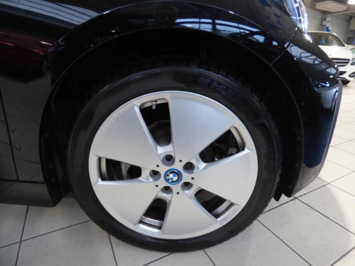 3ème feu stop|ABS, y compris assistant de freinage|Airbags de tête AV/AR|Airbags frontaux conducteur et passager|Airbags latéraux AV|Anneaux d'arrimage dans le coffre sur le seuil de chargement|Antenne "aileron de requin" + antenne courte|Appuis-tête : à l'AV : intégrés au siège, non ajustable (siège intégral), à l'AR : rabattables|Autoradio BMW Professional|Bandeau pare-soleil gris pour pare-brise|Banquette AR 2 places|Batterie lithium-ion hautes performances 32,9 kWh BMW EfficientDynamics|Boîte de vitesses automatique avec sélecteur derrière le volant|Câble de recharge standard sur prise domestique (5 m)|Ceintures de sécurité 3 points à toutes les places|Charge AC + Charge DC|Clés radiocommandées à mémorisation automatique des réglages "Personal Profile"|Clignotants blancs avec répétiteurs latéraux intégrés dans les rétroviseurs extérieurs|Clim Auto|Concept LifeDrive alliant fibres de carbone et aluminium BMW EfficientDynamics|Contrôle de freinage en courbe CBC|Contrôle Dynamique de la Stabilité DSC avec fonctionnalités étendues (y compris assistant de démarrage en côte)|Contrôle Dynamique de Traction DTC|Démarrage sans clé via le bouton Start/Stop|Désactivation de l'airbag passager|Déverrouillage électrique du hayon et du capot AV via la clé radiocommandée|Direction à assistance électrique BMW EfficientDynamics|Direction à assistance variable en fonction de la vitesse Servotronic|Dossiers de banquette AR rabattables symétriquement (50/50)|Eclairage dans le coffre|Eclairage plafonnier AV et AR|Eléments extérieurs (poignées de portes, baguettes de pare-chocs) couleur carrosserie|Feux antibrouillard AR (2)|Fixations ISOFIX aux places AR|Inserts décoratifs "Andesite Silver" mat|Interface Bluetooth et port USB|Jantes profilées 19'' (48cm) style 427 à rayons en étoile 5Jx19"/pneumatiques 155/70 R19|Kit de mobilité BMW|Lève-vitres AV électriques avec commande par impulsion et protection anti-coincement|Mesure individuelle de pression des pneumatiques|Modes ECO PRO et ECO PRO+ (inclut sélecteur de mode de conduite) BMW EfficientDynamics|Ordinateur de bord, Check-Control et indicateur de température extérieure|Ouverture des portes antagoniste, sans montant central|Prise 12V entre les sièges AV|Projecteurs Full LED|Radars de stationnement AR PDC|Sélecteur de mode de conduite avec modes ECO PRO et ECO PRO+|Sièges AV chauffants|Sièges conducteur et passager réglables en hauteur|Système de récupération de l'énergie au freinage BMW EfficientDynamics|Trappe pour recharge électrique : aile AR droite|Verrouillage automatique des portes dès 15km/h environ|Verrouillage centralisé des portes, du coffre et des trappes électrique / essence|Vide-poches ergonomiques dans les portes AV|Vitres AR fixes|Vitres teintées vertes|Volant cuir 2 branches, réglable en hauteur et en profondeur|Volant gainé cuir