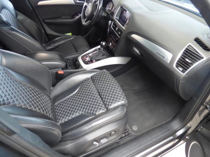 Accoudoir central AV avec vide-poches et 2 prises 12V|Accoudoir central AV, pour conducteur et passager AV, coulissant en longueur de 65 mm, inclinaison réglable rabattable, avec vide-poches sous l'accoudoir central, incluant 2 porte-boissons et prise 12V dans la console centrale|Accoudoir central rabattable dans le dossier de la banquette AR|Airbag grand volume adaptatif conducteur et passager AV avec détection de la position du siège, airbag adaptif pour le conducteur et passager AV.|Airbags latéraux thorax et bassin à l'AV|Anti-patinage (ASR)|Antidémarrage électronique intégré à la commande du moteur, activation automatique par la clé du véhicule|Appuie-tête réglables à l'AV et l'AR|Audi Music Interface|Audi Sound System|Banquette AR coulissante manuellement sur 100 mm avec 2 porte-boissons dans l'accoudoir et une trappe à skis|Banquette AR rabattable 60/40, déverrouillage à distance des dossiers via un levier dans la garniture latérale du coffre|Becquet de pavillon noir|Ceintures de sécurité: Ceintures 3 points à enrouleur pour tous les sièges, avec contrôle de port à l'AV, assorties à la couleur de l'habitacle|Châssis dynamique pour un excellent dynamisme et un grand confort|Climatisation automatique Confort Plus|Colonne de direction de sécurité|Console centrale surélevée avec compartiment de rangement et volet roulant|Contact d'allumage électronique: clé de contact mémorisant différentes données d'entretien|Contrôle de pression des pneumatiques|Contrôle électronique de stabilisation ESC avec détection de barres de toit et mode offroad, allie ABS, EBV, ASR et EDS à ses propres capteurs et compare les données de conduite avec les données de référence ; assure davantage de stabilité dans les situat|Coques de rétroviseurs extérieurs noires|Différentiel quattro Sport|Déverrouillage du coffre avec touche douce (déverrouillage avec assistance électrique)|Eclairage intérieur à temporisation avec contacteurs sur toutes les portières, lampe à l'AV avec 2 spots de lectures supplémentaires, lampes à l'AR avec fonction spots de lecture, cendrier éclairé à l'AV, boîte à gants, coffre et hayon éclairés, témoin lu|Essuie-glace AR avec commande de lavage-balayage automatique, balayage au passage de la marche AR lorsque les essuie-glaces AV sont activés|Essuie-glaces AV à 2 vitesses avec réglage d'intermittance sur 4 niveaux, commande de balayage coup par coup et lavage-balayage automatique|Etui à lunettes, dans le module d'éclairage intérieur AV, au dessus du rétroviseur intérieur|Frein de stationnement électromécanique avec fonction frein de secours sur les 4 roues durant la marche|GPS Advanced: système de navigation MMI de troisième génération avec affichage de cartes en 3D, joys tick intégré dans le bouton poussoir, permet l'accès à différentes sources audio telles que disque dur, lecteur DVD (audio/vidéo), 2 lecteurs de cartes SD|Hil Descent Control HDC: contrôle de descente qui permet de maintenir une vitesse stabilisée entre 9 et 30 km/h, possibilité d'activer le système jusqu'à 60 kml/h|Lunette AR dégivrante avec minuterie|Lève-vitres électriques AV et AR avec protection antipincement et fonction ouverture/fermeture confort par impulsion|Oeilletons de fixation, 4 oeilletons dans le coffre pour arrimer le chargement|Ordinateur de bord couleur et contrôle Autocheck et programme efficiency|Outillage de bord dans le coffre|Pack Eclairage intérieur|Pare-soleil rabattables et pivotants côté conducteur et passager AV|Parking System Plus avec camera de recul : système accoustique et visuel d'aide au stationnement AV et AR avec camera de recul permettant de visualiser l'AR du véhicule sur l'écran couleur du MMI|Peinture intégrale: pare-chocs AV/AR et bas de caisse couleur carrosserie|Phares antibrouillard intégrés dans bouclier AV|Projecteurs Xénon Plus incluant lave-phares, feux de jour à LED|Projecteurs antibrouillard|Préparation pour sièges enfants Isofix aux places extérieures AR|Quattro transmission intégrale permanente avec répartition asymétrique et dynamique de couple, différentiel central autobloquant, blocage électronique de différentiel EDS par intervention sur les freins des roues motrices|Rampes de pavillon Noires|Régulateur de vitesse|Rétroviseur intérieur jour/nuit automatique incluant le détecteur de pluie et de luminosité|Rétroviseurs extérieurs escamotables électriquement, dégivrants, jour/nuit automatiques des deux côtés et buses de lave-glaces dégivrantes|Sellerie en cuir Nappa fin avec surpiqures en losage sur la partie centrale des siéges|Seuils de portes en aluminium avec logo S, protection du seuil de chargement supplémentaire en acier inoxydable|Sièges AV Sport S|Sièges AV électrique incluant supports lombaires électriques|Tapis complémentaires AV et AR en velours assortis à la couleur de la moquette|Tire Mobility System|Verrouillage électrique de la colonne de direction|Vide-poches dans les contre-portes AV/AR pouvant contenir une bouteille de 1,5 litres|Volant airbag Sport 3 branches multifonctions en cuir avec palettes de changement de vitesses tiptronic|Jantes Audi Sport en aluminium coulé style 5 branches doubles finition titane, polies, brillantes, 8.5Jx21"avec pneus 255/40 R21 107Y|Audio Bang & Olufsen